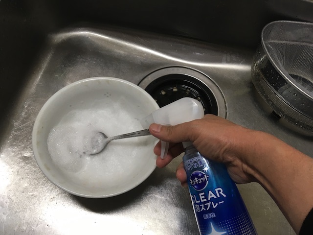 ↓キュキュットクリア泡スプレーを吹き掛けていきます