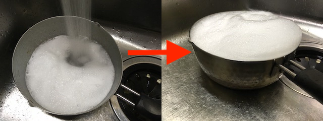 で、3〜5分くらい、放置すると泡が収まってきます。