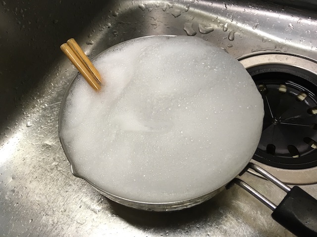 ※さすがにカレールーなどがびっしりこびり付いた大鍋などは、液体洗剤+スポンジ等で洗った方が良いと思います。